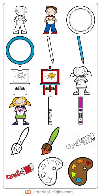 Do you know a budding artist? There's one in each of us! Use these images to embellish your memory pages celebrating your artist's creations.
