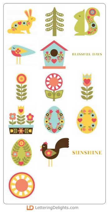 Yes, winter is fun with building snowmen, yummy hot chocolate and crackling fires...but after a few days of that, I'm saying, "Enough, already!" (Am I the only one who feels this way? Surely not!) So for me, Spring truly is Bliss! Not too cold, not too hot, birds returning, flowers and grass and leaves on the trees springing forth...it just can't get any better than that! If anyone else out there shares this opinion, this set is for us! Lover's of warmth and color, Unite! :-}