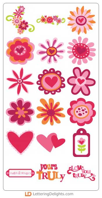 Flowers, Flowers, and more Flowers! The Yours Truly SVG set is like a 'flower explosion'! And (luckily for us!) the flowers are of the 'heart' variety, making them all the more perfect for giving to our special Valentines.