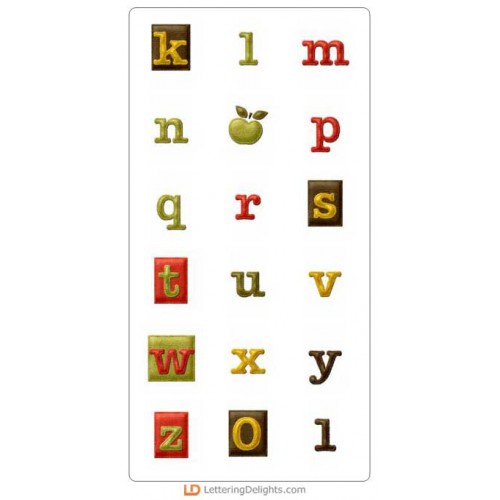 This bright and cheery alphabets reminds you of the good ol' days at grandma's house. Various colors..