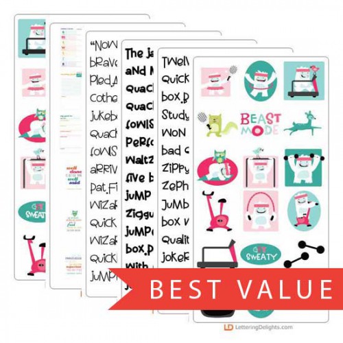 Betty gets sweaty bundle includes a sweaty Betty the Yeti working out thanks to her New Year's goals. The bundle includes printable planner sheets to help with the goals.