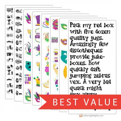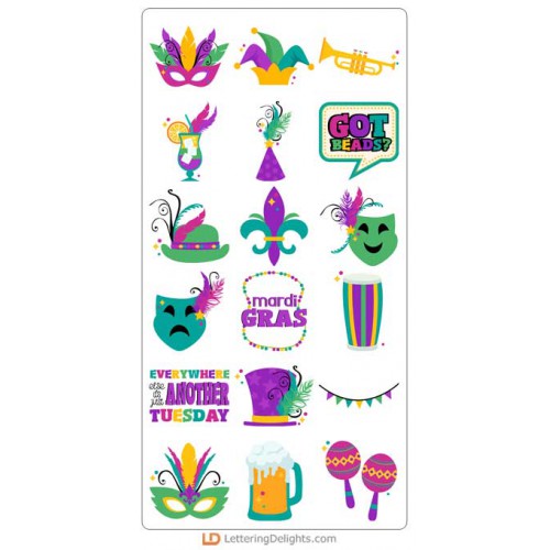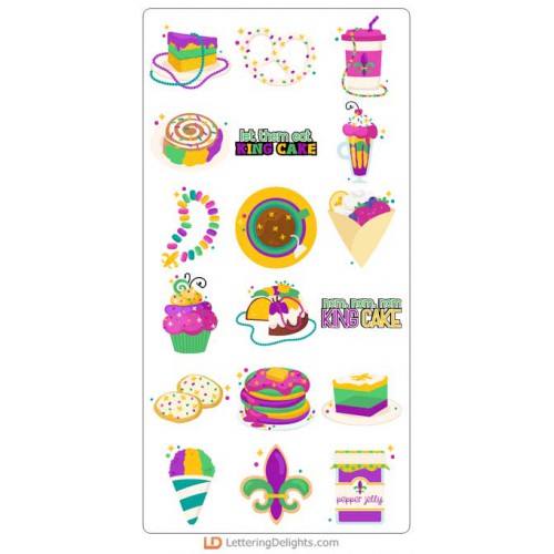 This fun collection features food, party and celebration imagery perfect for Mardi Gras! Use in decor, cards, crafts, classrooms, planner stickers, parties, scrapbook pages and more! Products included in this bundle: