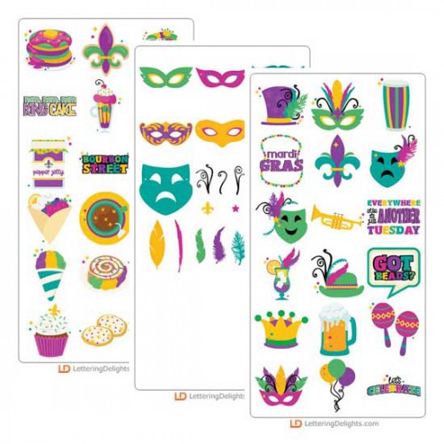 This fun cuttable graphic set features 26 party and celebration imagery perfect for Mardi Gras! Use ..