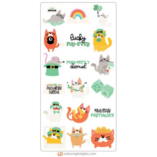 This adorable cuttable collection features whimsical cats living their best life and lucky life. Perfect for cards, crafts, gifts, planner stickers, scrapbook pages, classrooms, St. Patrick's Day and more!