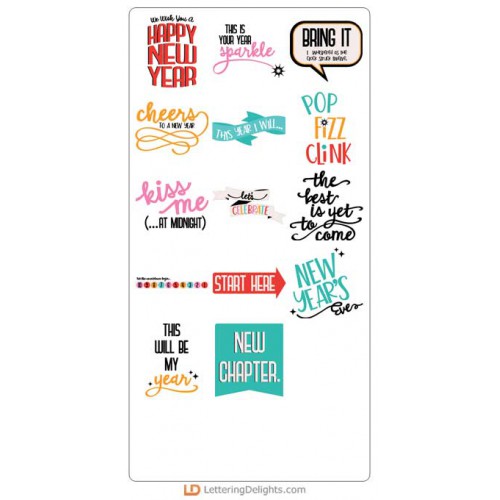 Create fun cards, New Years decor, tags and more with these fun, contempory styled New Years phrases..