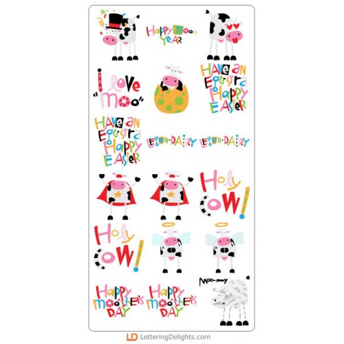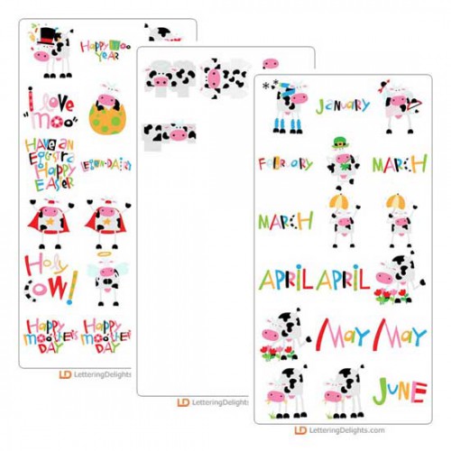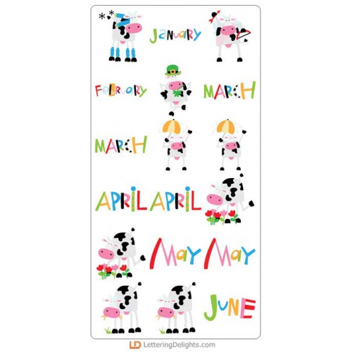 This adorable cuttable collection features whimsical cow-lendar cows and puns. Perfect for cards, crafts, classrooms, planner stickers, scrapbook pages, decor and more!