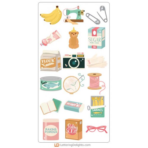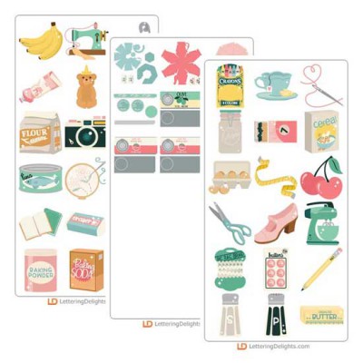 This beautiful vintage style cuttable collection features domestic elements from crafts, sewing and to the kitchen! Perfect for cards, crafts, gifts, decor, scrap booking, classrooms, planner stickers and more!