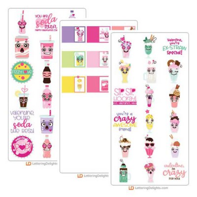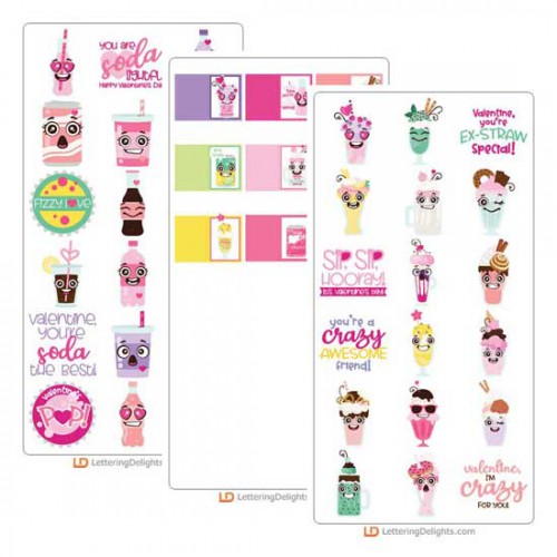 This fun cuttable collection features adorable kawaii style milkshakes, soda pop and crazy straws. Add more crazy straws from the set to complete your graphic or keep as is. Perfect for Valentines, gifts, cards, crafts, classrooms, planner stickers, scrapbook pages and more! Products included in this bundle: