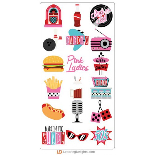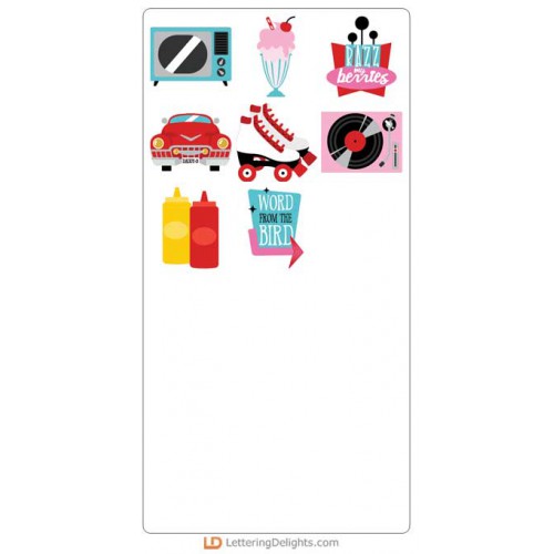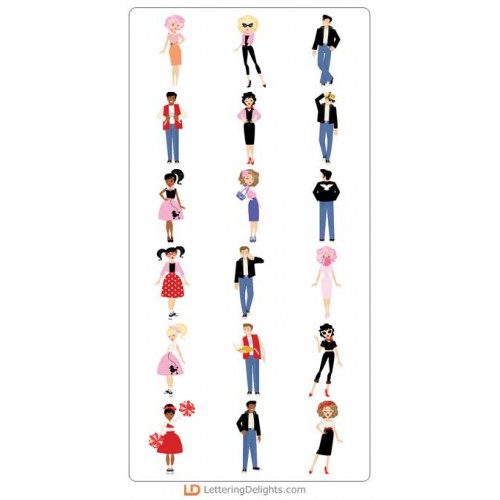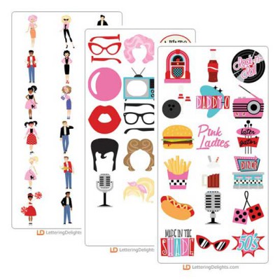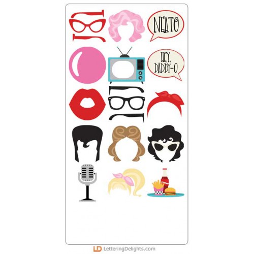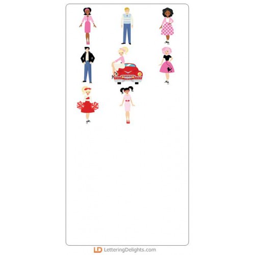 This fun cuttable collection features different 1950's themed imagery and ladies and dudes. Perfect for parties, crafts, gifts, card making, decor, scrap booking, planner stickers and more!