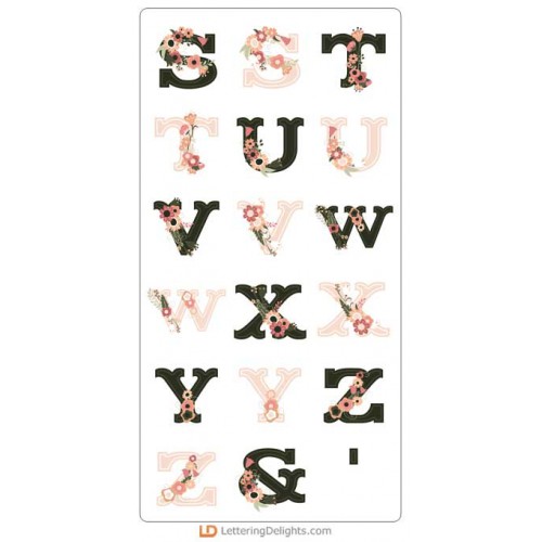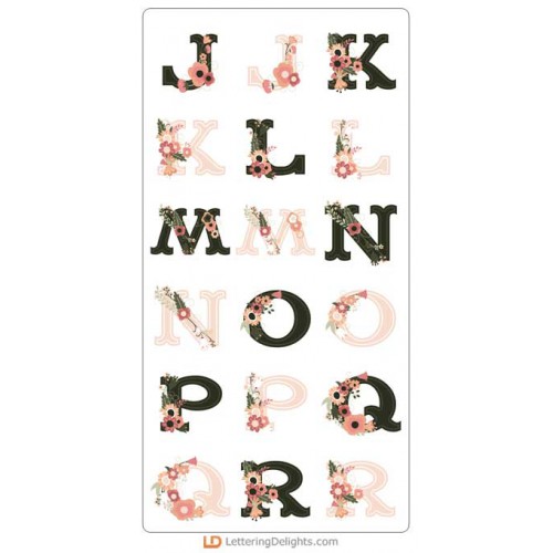 This full-color font/alphabet features striped lettering with pretty florals throughout. There is a ..