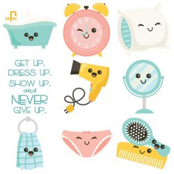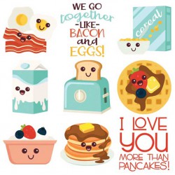 This fun collection features kawaii style breakfast food and getting ready items perfect for cards, crafts, gifts, planner stickers, scrap book pages, classrooms and more! Products included in this bundle: