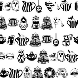 This fun cuttable graphic set features 26 gothic and spooky tea party elements perfect for Halloween..