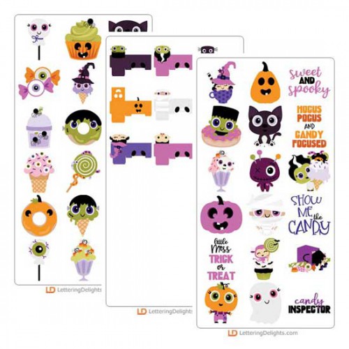 This adorable cuttable collection features sweet Halloween monsters, images and treats. Perfect for the holidays. Use it to create fun cards, gifts, party decorations, planner stickers, scrap book pages and more! Products included in this bundle:
