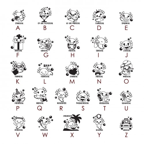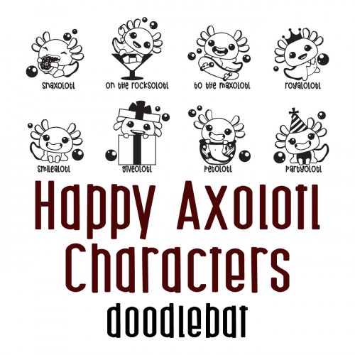 This adorable doodlebat features 26 little axolotls and phrases perfect for cards, crafts, gifts, de..