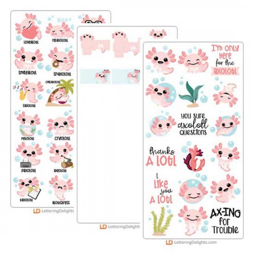 This adorable cuttable graphic set features little axolotls and phrases perfect for cards, crafts, g..