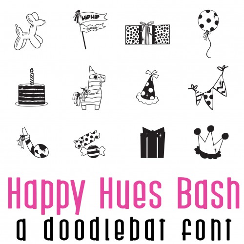This fun doodlebat font features 26 different whimsical party elements perfect for cards, crafts, gi..