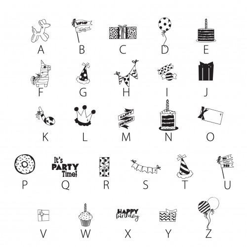 This fun graphic set features 26 different whimsical party elements perfect for cards, crafts, gifts..