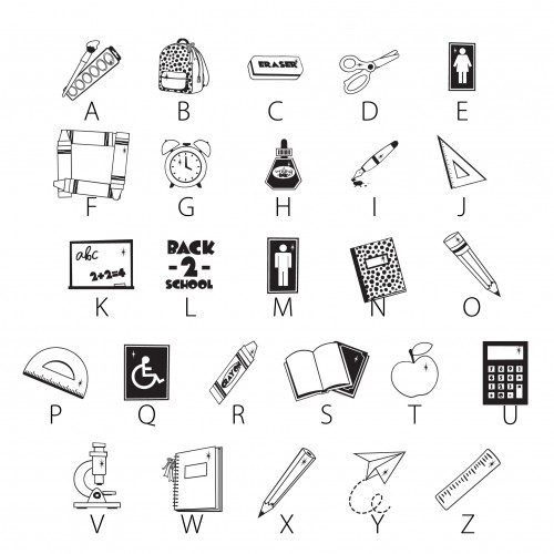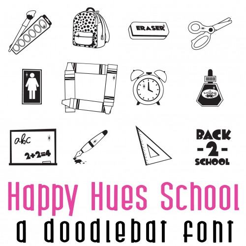 This fun doodlebat font features 26 different whimsical school themed elements perfect for cards, cr..