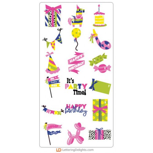 This fun collection features whimsical party elements and school supplies, perfect for cards, crafts, gifts, planner stickers, scrap book pages, parties and more!