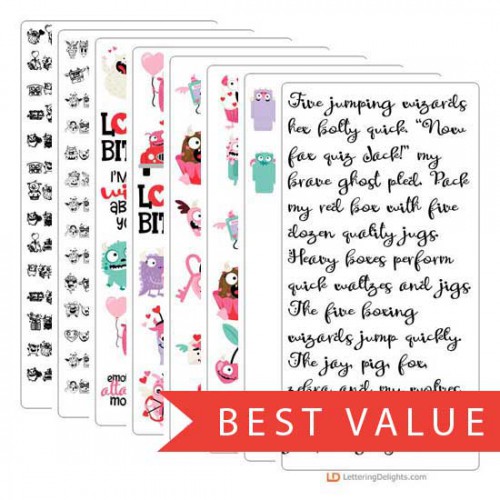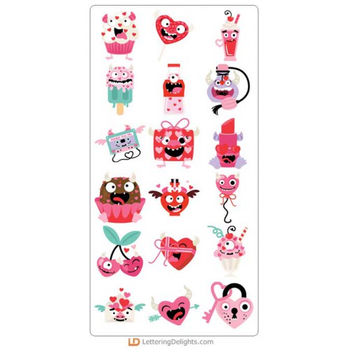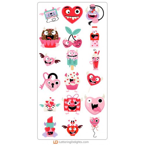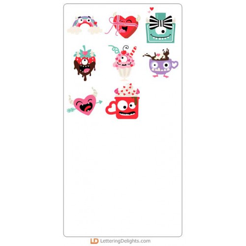This whimsical graphic bundle features adorable monsters in love and love monster objects.Perfect for Valentines, cards, crafts, gifts, planner stickers, classrooms, scrap book pages and more!
