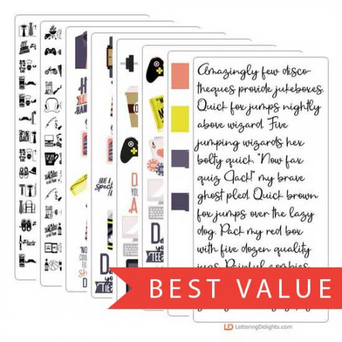 This collection features handsome Dad items and hobbies, perfect for Father's Day, crafts, gifts, planner stickers, scrapbook pages and more! Products included in this bundle: