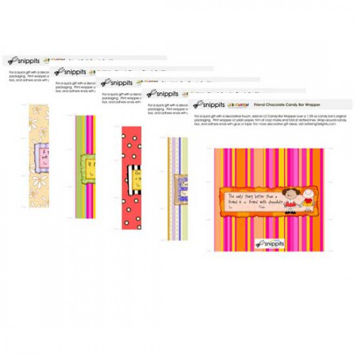 So many ways to show your friendship and appreciation! Choose from six adorable, printable candy bar wrappers, perfectly designed and ready to wrap around standard sized chocolate bars. Your friends will love your creativity and good taste! Products included in this bundle: