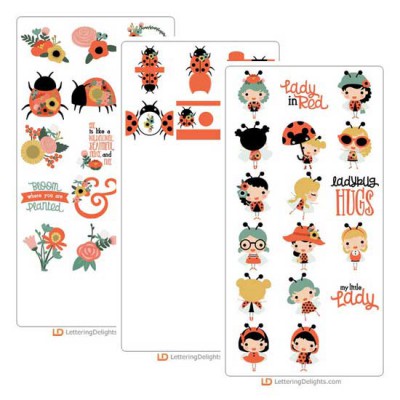 Our Lady in Red Cuttable Collection features adorable little ladies dressed in their best Red and Black spotted attire! These personified Lady Bugs are perfect for card making, scrap booking, crafts, parties, planner stickers and more! Our Collection also includes more classic beautiful florals and lady bugs perfect for Spring or Mother's Day. Get two cut sets,and an amazing cut projects set full of fun lady bug cuttable crafts. Products included in this bundle: