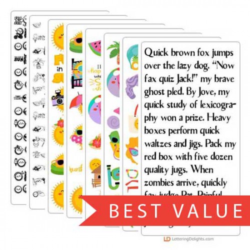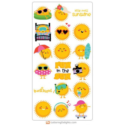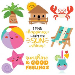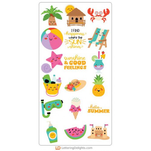 This fun collection features fun loving sunshines and iconic summer images perfect for summer, parties, cardmaking, classrooms, scrapbook pages, planner stickers and more!