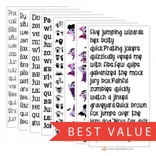 This adorable collection features our little vampires, bat, and fang-tastic puns perfect for Halloween. Create fun parties, cards, crafts, decor, scrap book pages, planner stickers and more! Products included in this bundle: