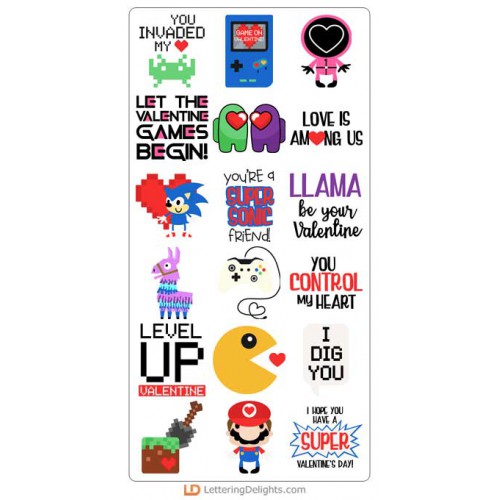 This fun graphic set features 29 classic video games, characters and Valentine puns. Perfect for car..