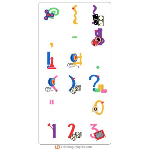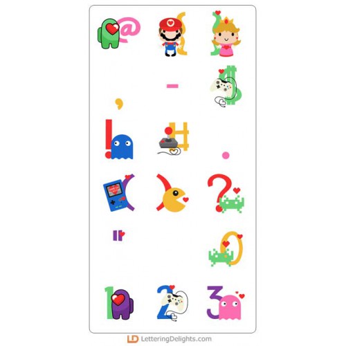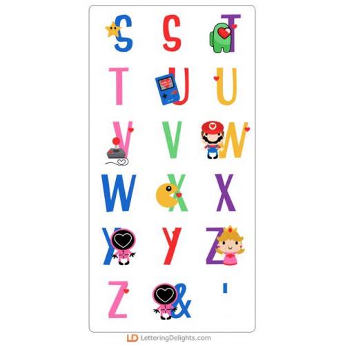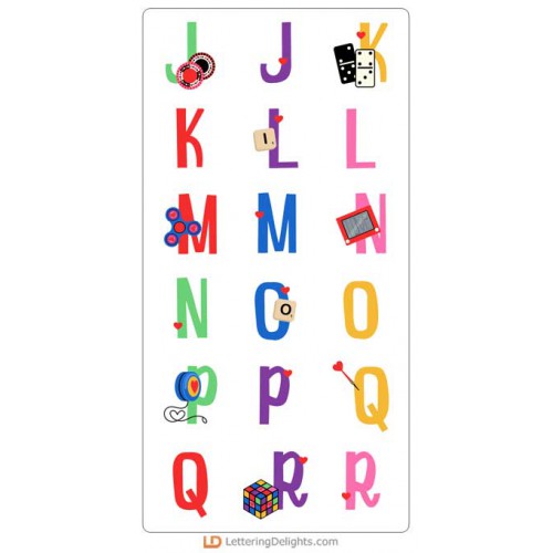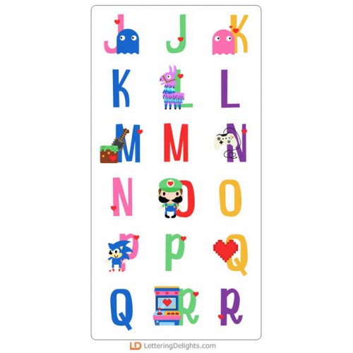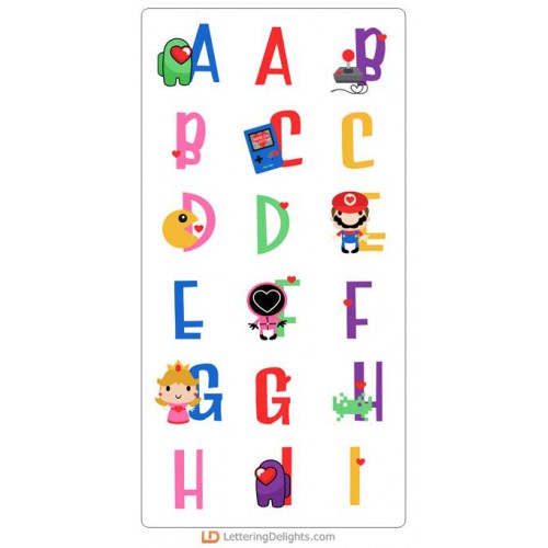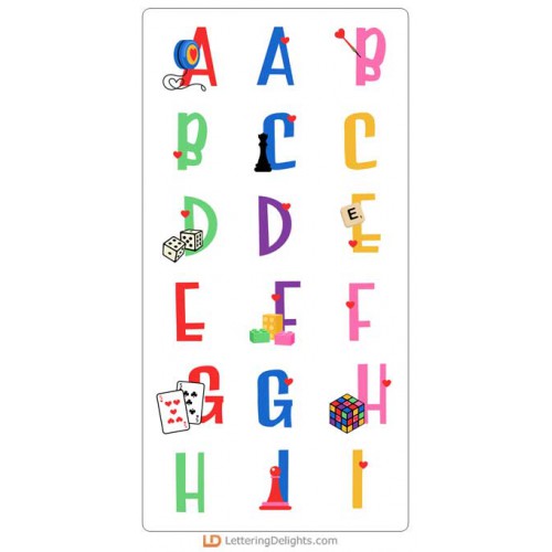 This fun alphabet features the graphics from our Love Games Collection...