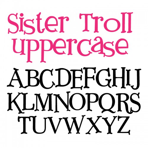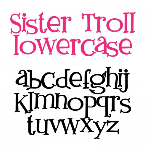 This sister font of ZP Brother Troll has a real lowercase and whimsical, toggled baseline...