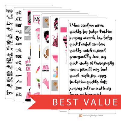 This fun graphic set features images and phrases perfect for the working mom! Use this doodlebat fon..