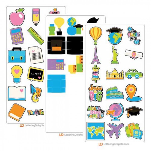 This fun collection has all the perfect imagery for the graduates, travelers and teachers in your life. Perfect for card making, gifts, scrapbooking, planner stickers and more!