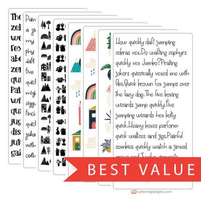 This fun doodlebat font features 26 different landscape features from buildings, mountains, and tree..