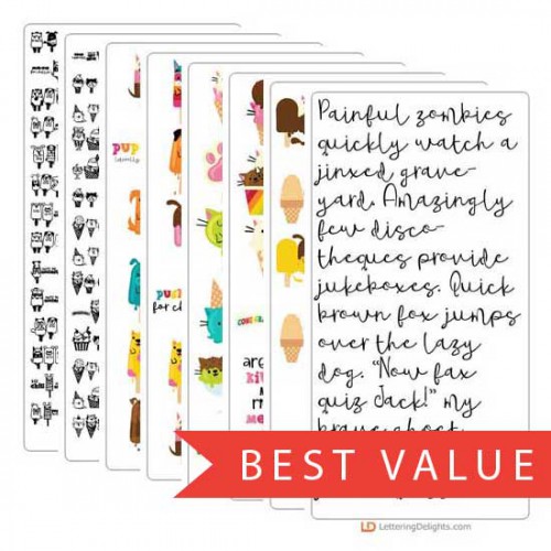 This fun collection features adorable pupsicles, kitty cones and puns perfect for cards, crafts, gifts, parties, planner stickers, classrooms, scrapbook pages and more! Products included in this bundle: