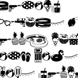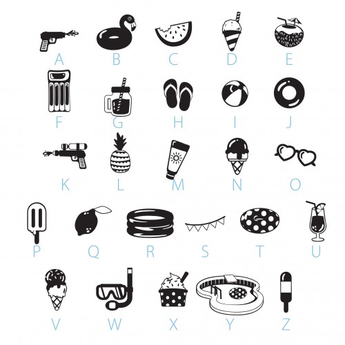This doodlebat font has 31 different summer and pool party themed images. Create fun crafts, scrap b..