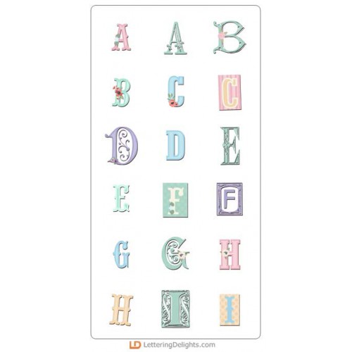 This full-color font/alphabet features a pastel color palette with floral elements in many letters. ..