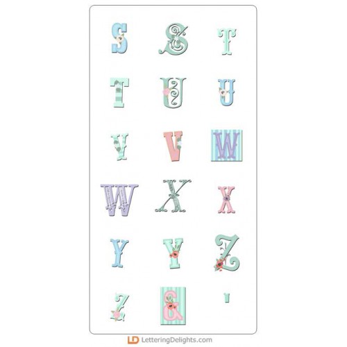 This full-color font/alphabet features spring-colored flowers on pastel lettering. There is an alt c..