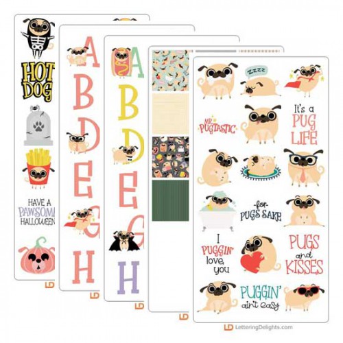 This adorable graphic collection features little pugs living their best life and ready for Halloween. Perfect for cards, gifts, crafts, planner stickers, scrap book pages and more!