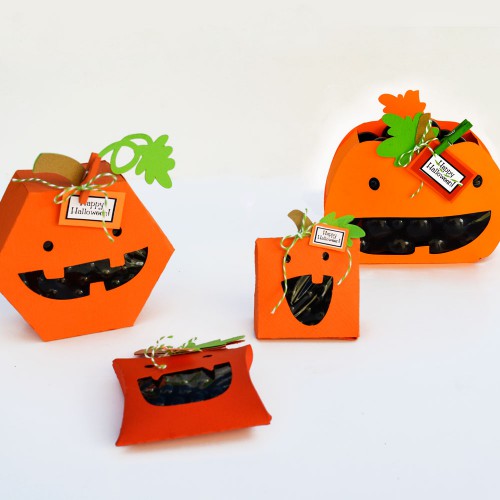 Create fun pumpkin boxes, gift containers, treat bags and more for Halloween parties, decor and gift..