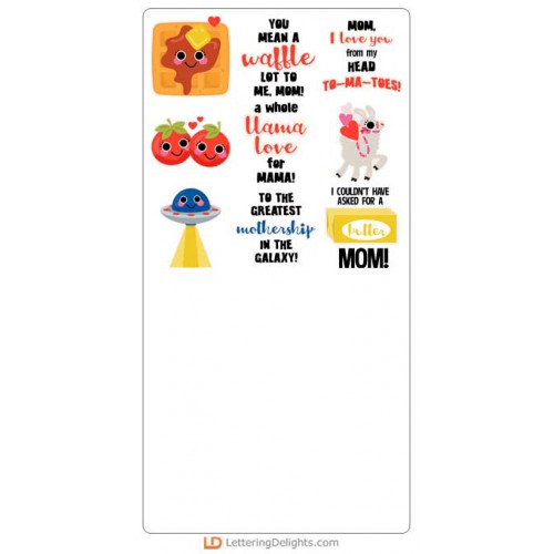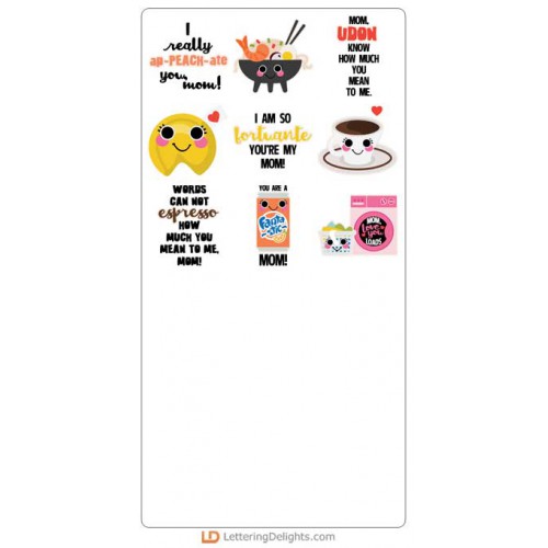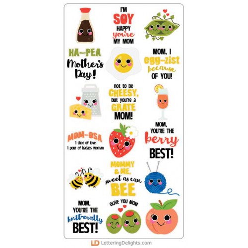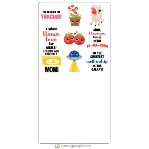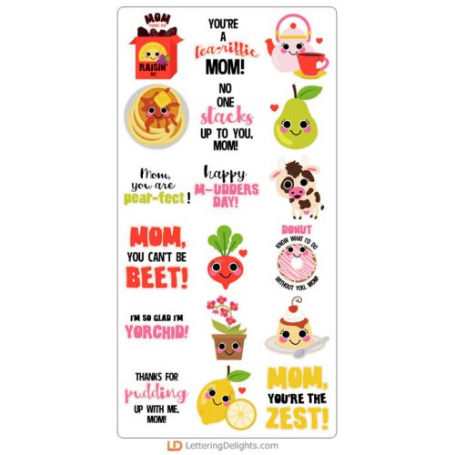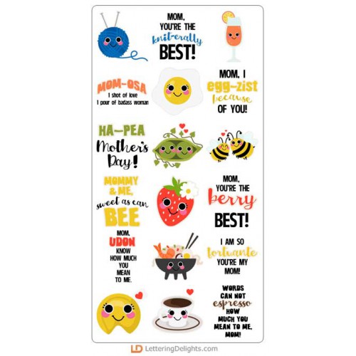 This adorable collection features kawaii style images with corresponding Mother's Day puns. Perfect for Mother's Day, gifts, card making, planner stickers, scrapbook pages, decor and more!