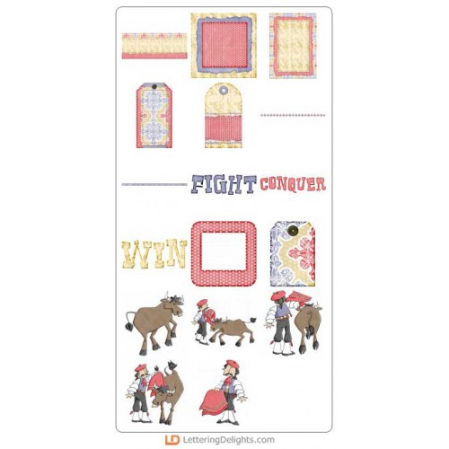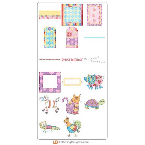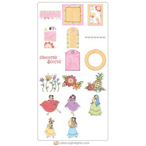Rani's whimsical style shines through in this enchanting, money-saving bundle of paper crafting supplies. Included are alphabets and graphic sets riddled with bullfighting matadors, dancing senoritas, Mariachi band members, and folk art animals for your south-of -the-border or Cinco de Mayo scrapbook pages. Products included in this bundle: