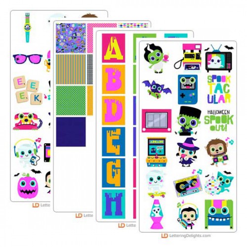This graphic collection features adorable monsters living in the retro past, with items from the 80s and 90s. Perfect for Halloween, cards, crafts, parties, gifts, decor, planner stickers, classrooms, scrapbook pages and more! Products included in this bundle: