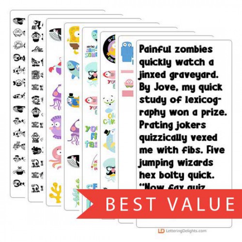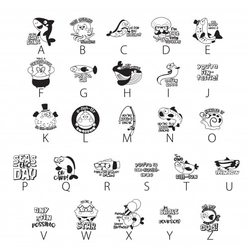 This adorable collection features trendy ocean characters and puns that are perfect for cards, crafts, gifts, planner stickers, scrap book pages, classrooms, teachers and more!