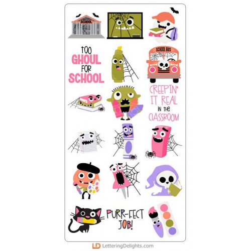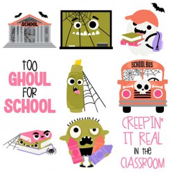 This adorable collection featueres spooky school themed images and monsters perfect for Halloween, classrooms, teachers, gifts, decor, scrap book pages, planner stickers and more! Products included in this bundle: