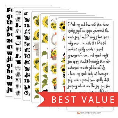 This beautiful graphic collection features cheerful sunflowers in every direction, and includes additional stems, vases, wreath, watering can and various items to craft you own sunflower image as well as fun sunflower and fall floral configurations agains vintage objects and animals silhouettes. Perfect for cards, crafts, scrap booking, planner stickers, home decor and more!