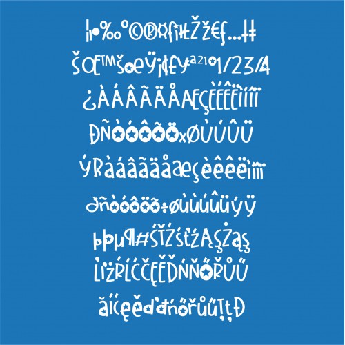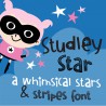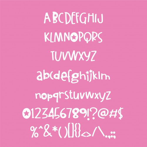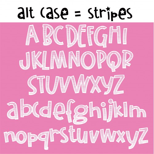 This fun font features stars throughout and a full alt-case of striped letters and numbers to accent..