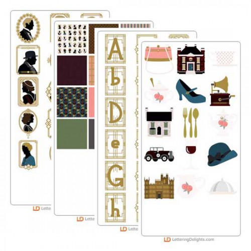 This fun 20's era collection features art deco styled aristocratic cameos, 20's fashion, english buildings, tea settings and more! Perfect for parties, decor, card making, scrap booking, crafts and more!