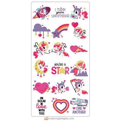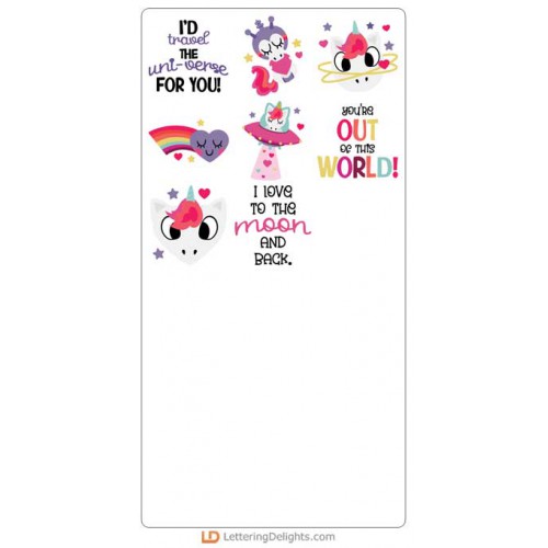 This magical cuttable collection features adorable space unicorns and Valentine space unicorns that are perfect for cards, crafts, gifts, planner stickers, classrooms, scrap book pages, parties, Valentine's and more!